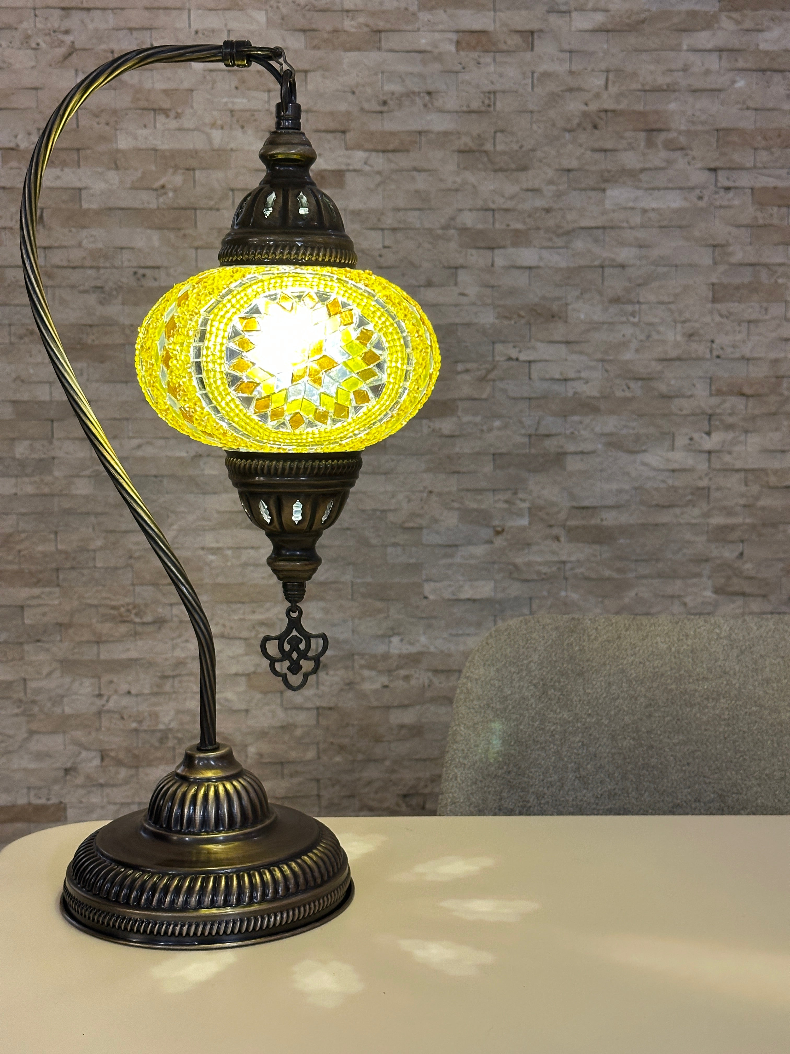 Handcrafted Turkish Mosaic Goose Neck Lamp - Large Globe - ID: GL-MAIN